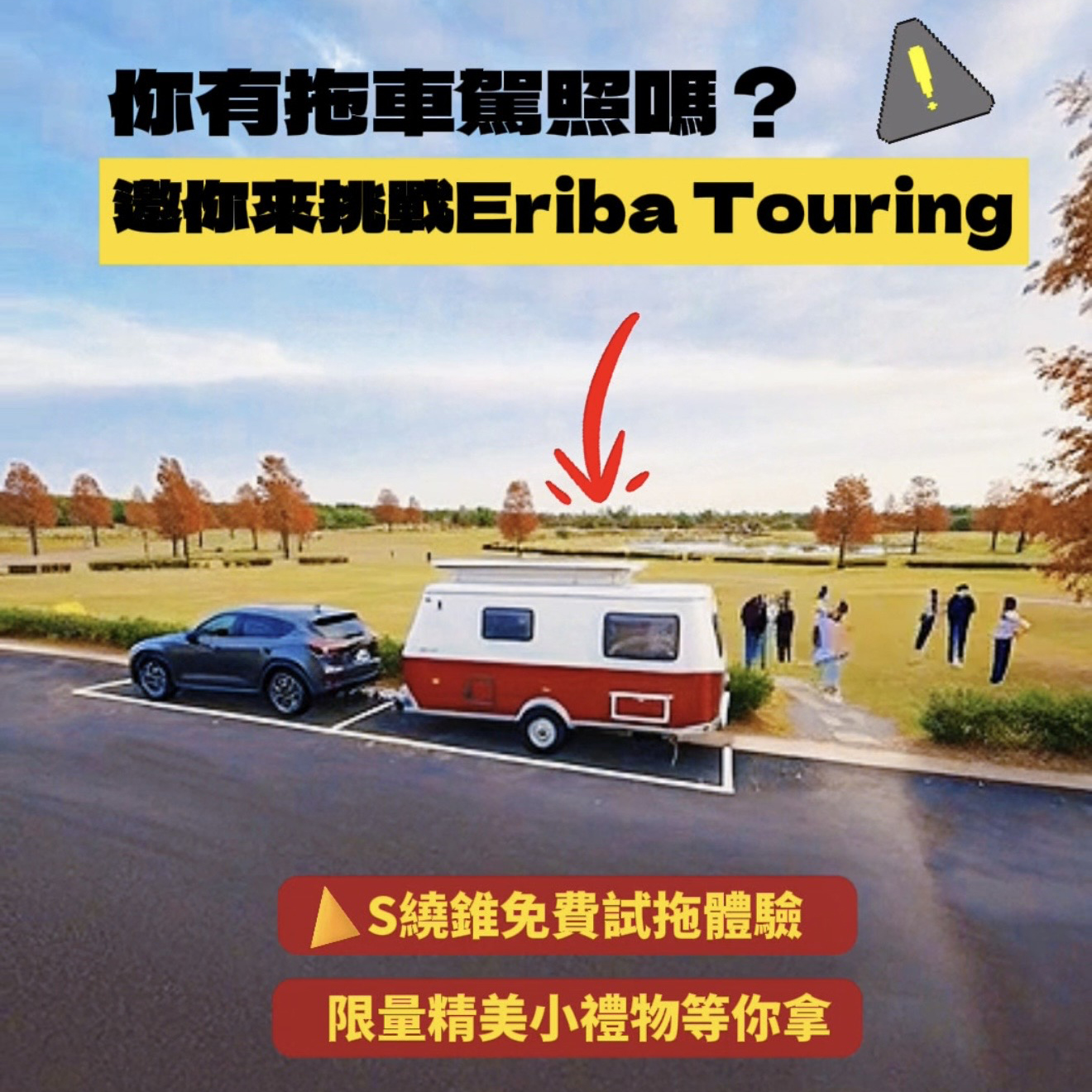 你有拖車駕照嗎? Eriba Touring S繞錐邀你挑戰!2026.3.3/在: 最新消息, 活動展覽 \你有拖車駕照嗎? Eriba Touring S繞錐邀你挑戰!/ 日期 :3/7(六)-3/8(日 ) 地點:北野祭 – 高樹新豐清水公園 活動:S繞錐試拖免費體驗 – 專人陪同指導實操拖掛流程 親身感受行駛穩定駕馭樂趣 讓每一次出發延伸風格自由 – 活動車輛: 前車為Marco Polo,搭配拖曳式露營車Eriba Touring 530 無需自備,直接來體驗 獎項: 上車試拖,限量精美小禮物等你拿 最速完成任務 TOP 1→ 加碼再贈星巴克禮券一本 即將額滿,快點下方連結搶先報名! https://forms.gle/jBthq3iR4uokE3Bw8 ﹀﹀﹀﹀﹀﹀﹀﹀﹀﹀﹀﹀﹀﹀﹀﹀﹀ 🅥 品牌陳經理 𝟬𝟵𝟴𝟮-𝟮𝟳𝟬𝟭𝟲𝟯 https://eriba.com.tw/wp-content/uploads/2026/03/10.jpg 2160 2164 oma-user /wp-content/uploads/2023/04/eriba_logo_grau-1.png oma-user2026-03-03 16:34:112026-03-03 16:35:10你有拖車駕照嗎? Eriba Touring S繞錐邀你挑戰!
